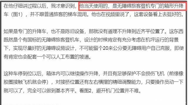 他称郑智化当天使用的,是无障碍旅客登机专门的箱形升降车。 专门的升降车,如果不是陈旧设备,那就没有道理不升降到近齐平位置,不可能留20来公分,要用户自己克服,即使有,肯定也会配套布置坡道。